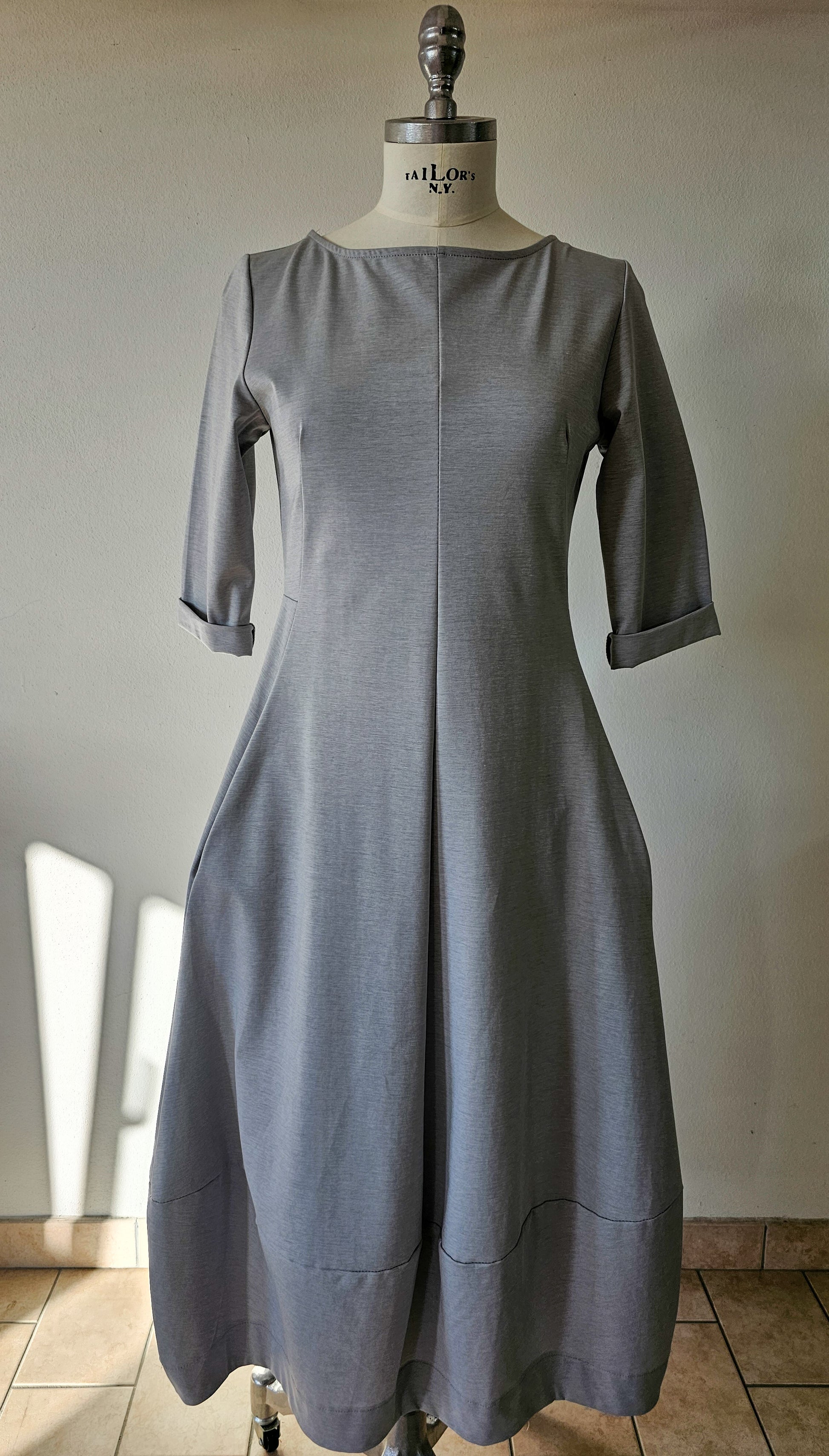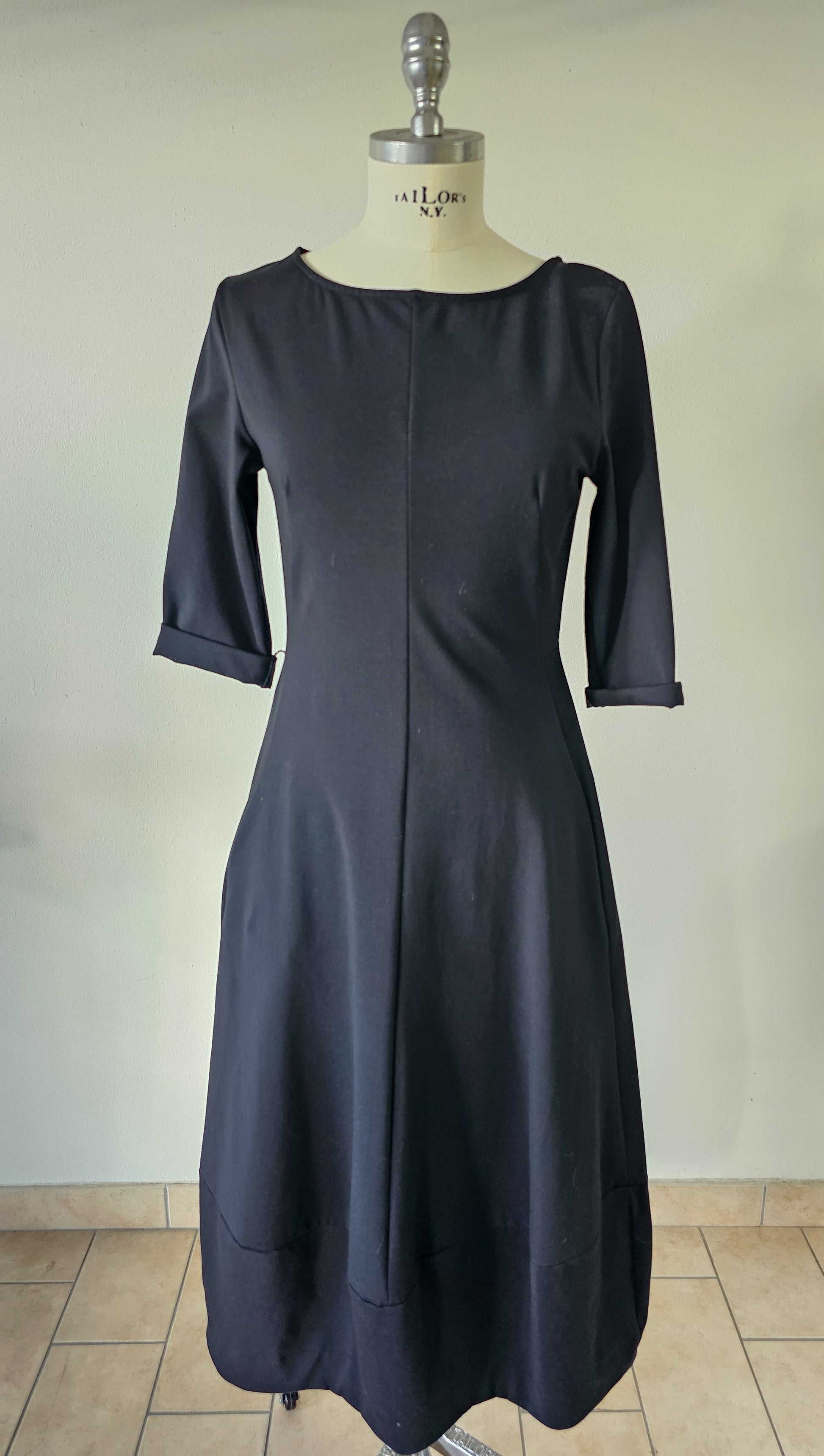 Abito midi in punto milano elasticizzato, dal design pulito ed essenziale. Linea morbida che accompagna la figura senza segnare, con scollo tondo, maniche al gomito e tasche. Elastico e confortevole, ideale per un’eleganza quotidiana.