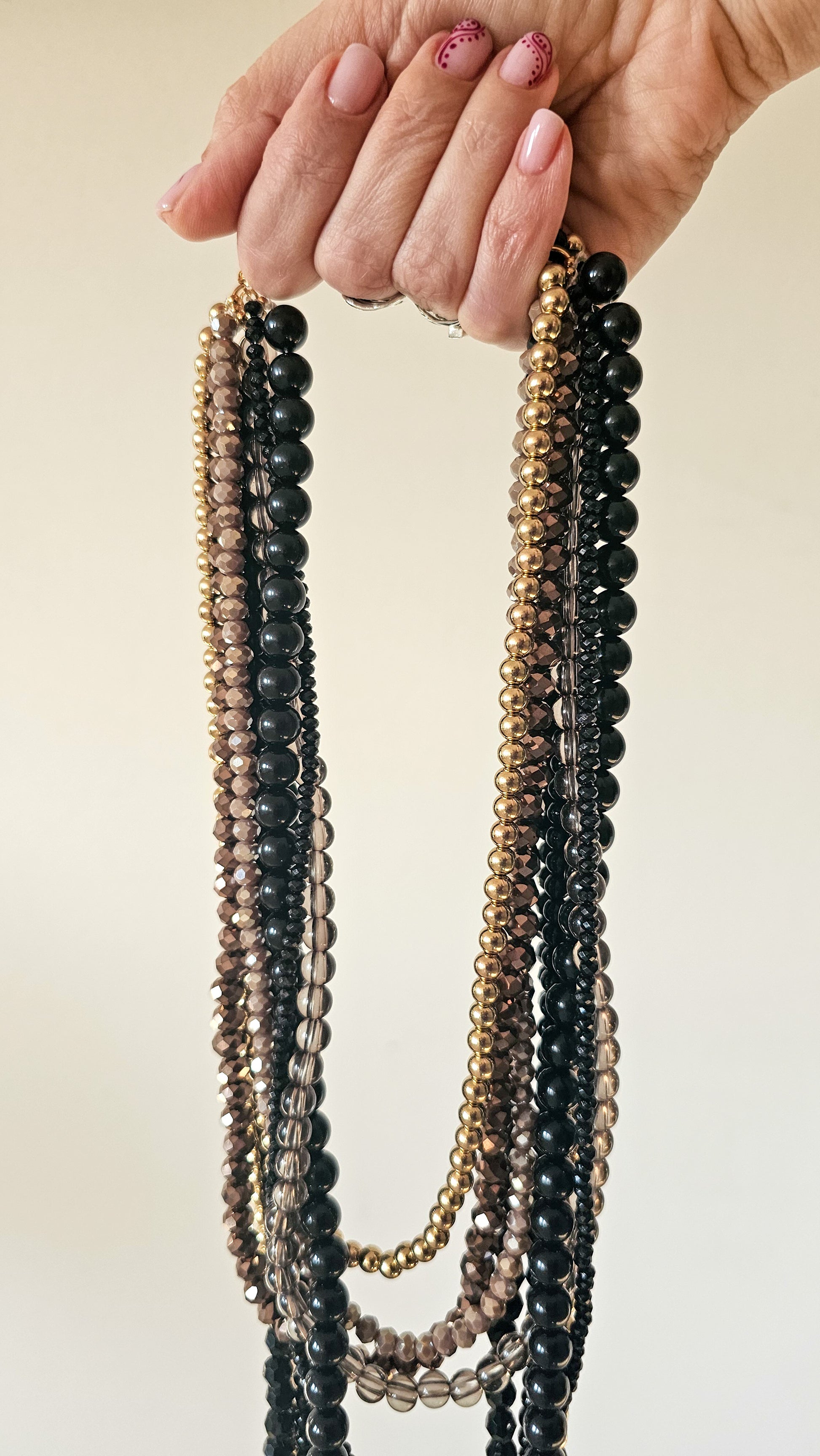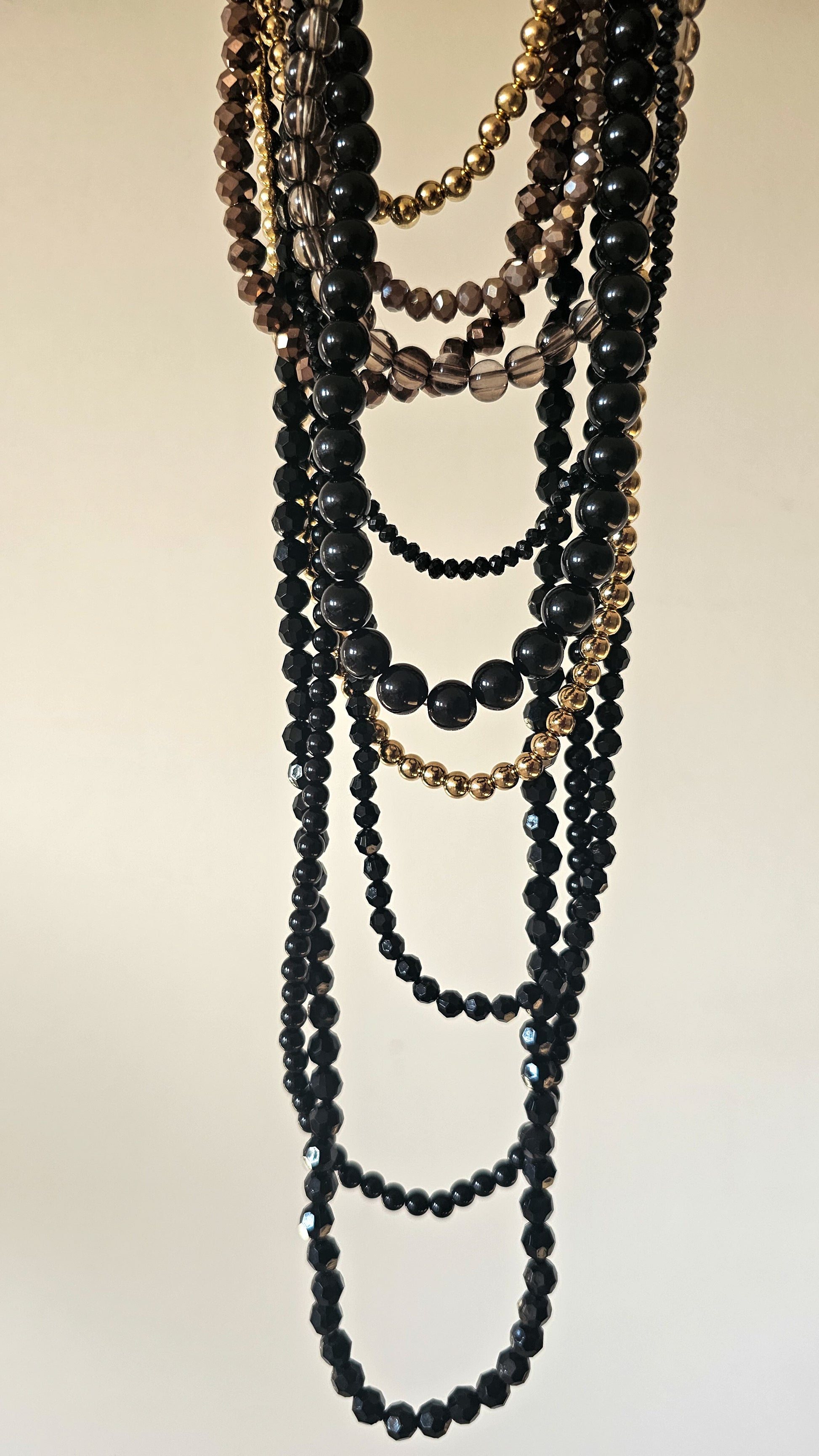 Set composto da due collane coordinate nei toni del nero, oro e marrone fumé: