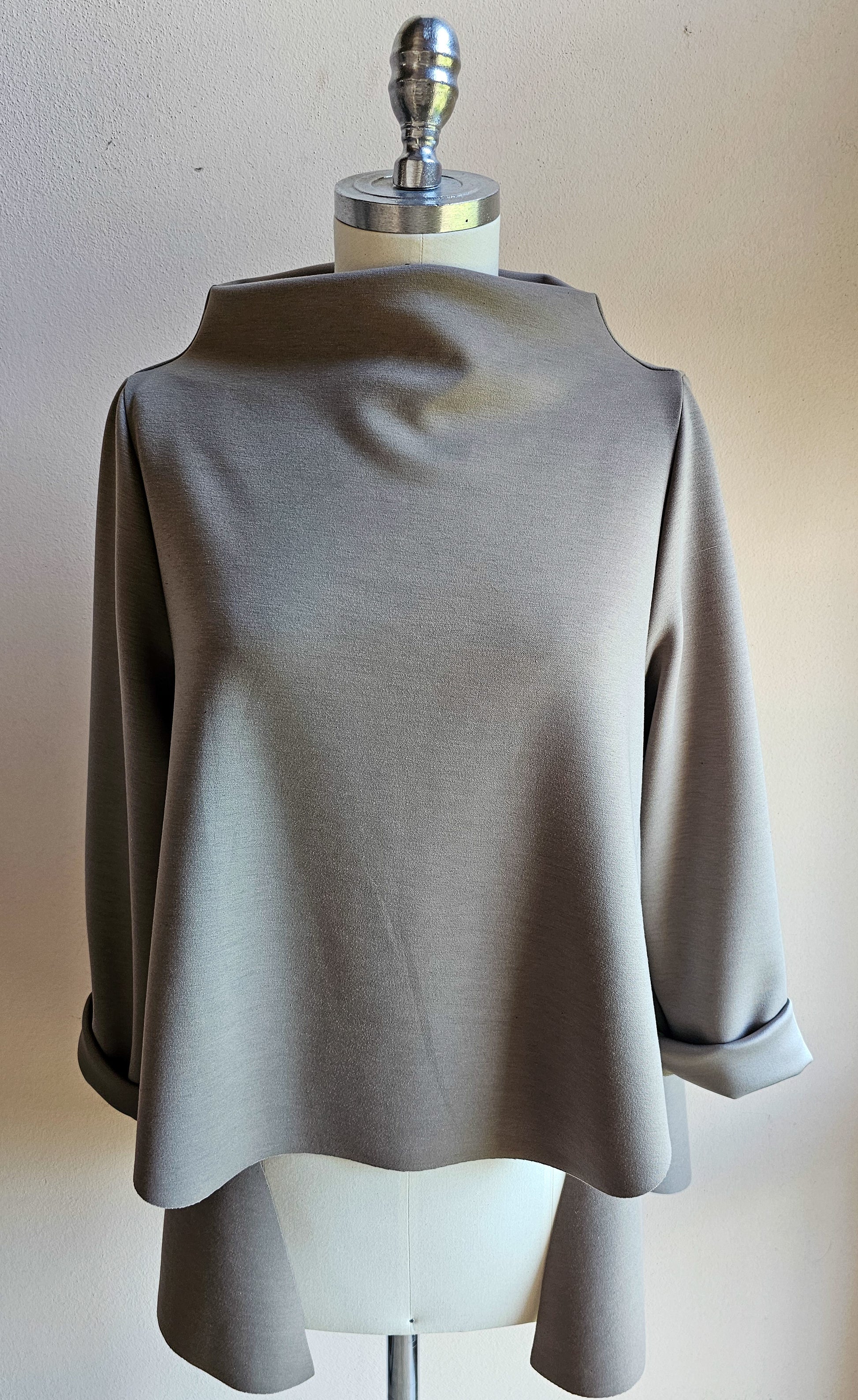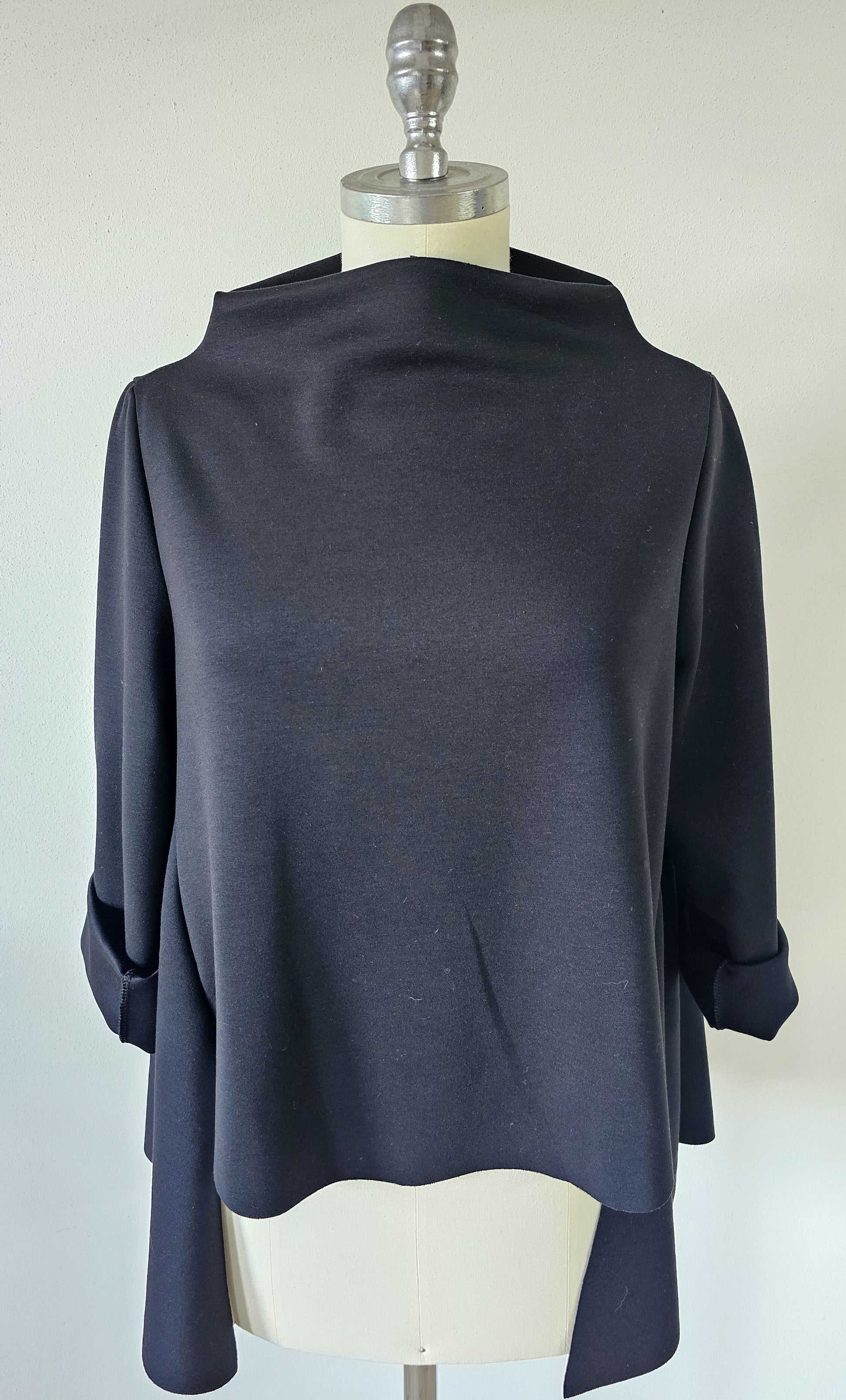 Felpa leggera in maglia tecnica morbida ed elasticizzata, caratterizzata da linea trapezoidale e vestibilità oversize. Taglio asimmetrico, più corto sul davanti e più lungo sul retro.