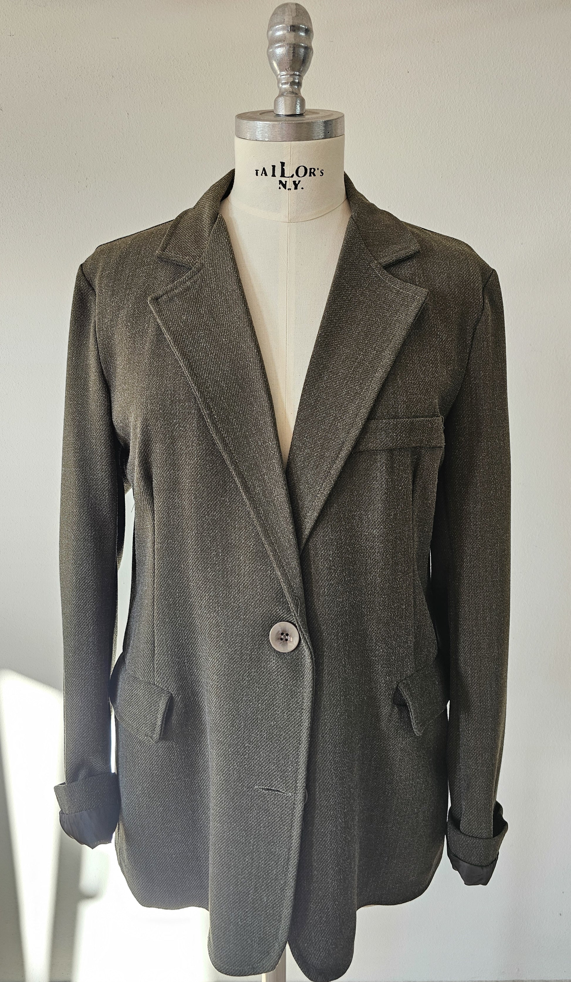 Giacca verde dal taglio dritto e leggermente over, con rever classico e chiusura monopetto. Linea fluida e contemporanea, perfetta anche abbinata separatamente ai bermuda coordinati.