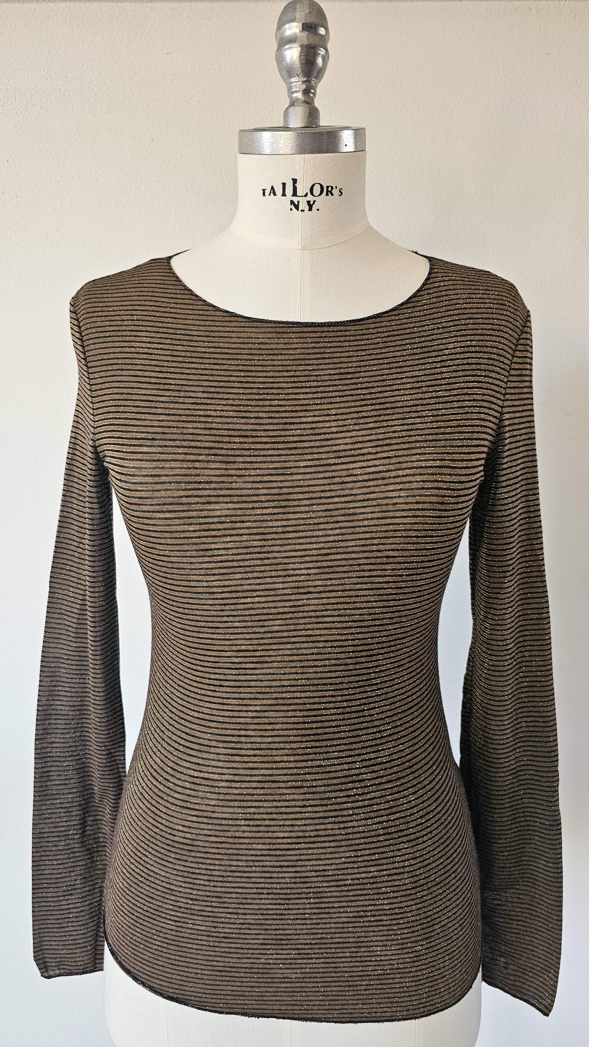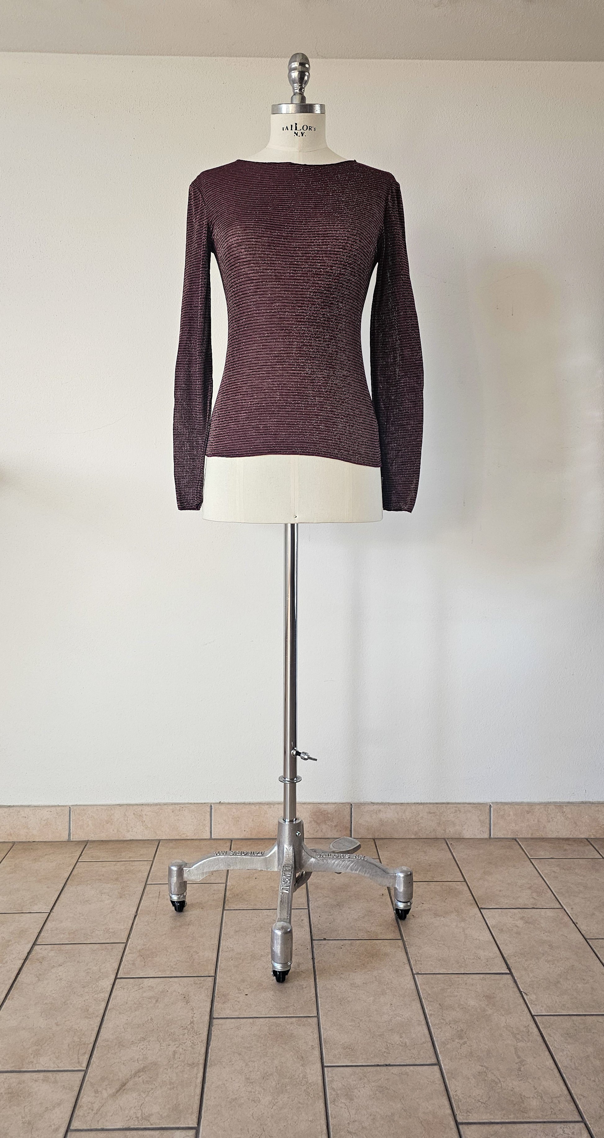 Maglia a manica lunga in fine misto cachemire elasticizzato con micro righe e leggero filo di lurex.