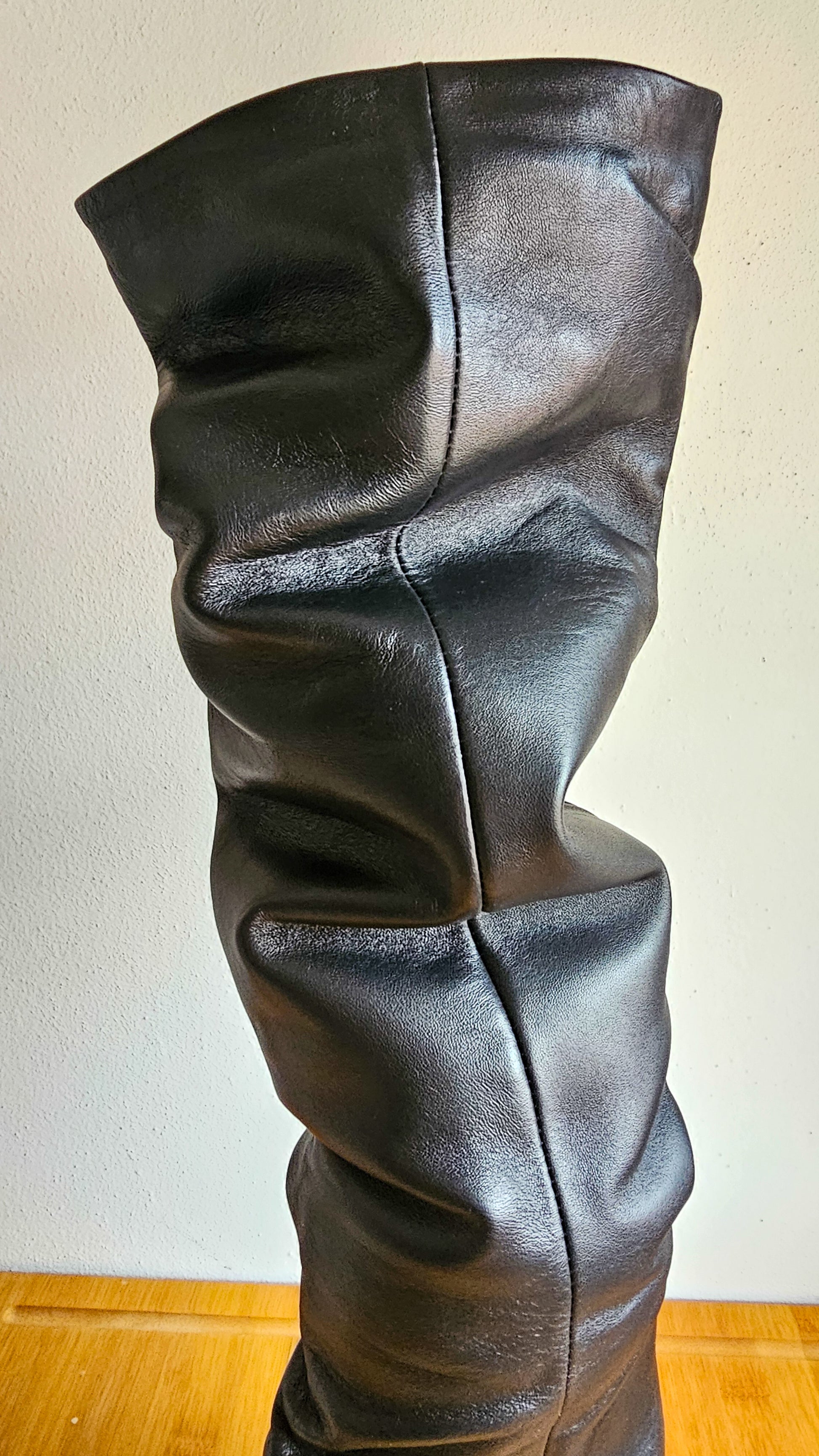 • Linea: stivale alto al ginocchio, effetto arricciato